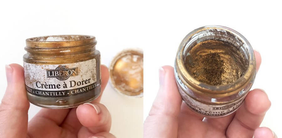 Ja np. często używam wosku złotego z firmy Liberon. Takie woski to jeszcze więcej możliwości. Dają piękne metaliczne wykończenie i bardzo głęboki kolor, niczym prawdziwe pozłacanie i świetnie sprawdzają się przy różnych detalach. Taki metaliczny wosk jest dość drogi, bo mały słoiczek Liberon 30ml kosztuje ok. 40zł, ale muszę powiedzieć, że jest on niesamowicie wydajny. Ja z tym jednym słoiczkiem robiłam już złocenia: stolika, podkładek pod kubki, krzesła oraz dekoracyjnych ram i nadal mam 1/4 opakowania.